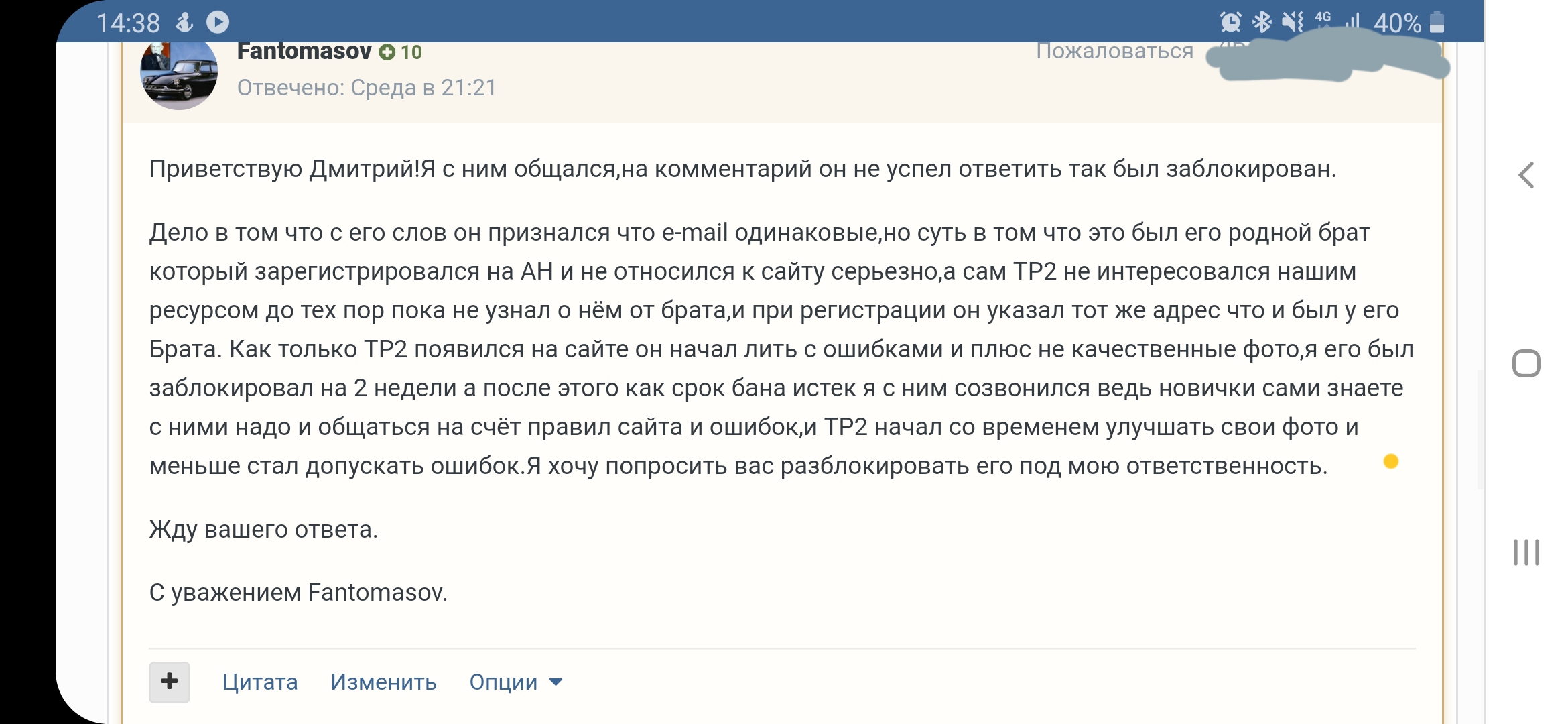 Всем привет! BLR_Nomer- аккаунт брата, я к нему отношения не имею, о сайте узнал от него же. Почту взял эту же так как она у нас одна на двоих ( в наше время, врятли кто то через почту что то отправляет, в основном она используется для для регистраций в разных сервисах и последующем восстановлении при утрате пароля) никакого злого умысла не было задуманно, просто немного не разобрался с правилами. Если потребуется- готов сменить и зарегистрировать отдельную для сайта. Надеюсь поймете и дадите совет что в такой ситуации делать.