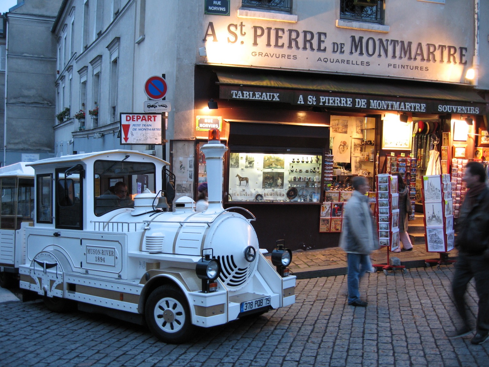 Просмотрел Google Maps и фото, привязанные к ним, и опознал место съёмки: направо за кадром - вход на площадь Тертр. Я как раз и предполагал, что фото сделано где-то на вершине Монмартра, неподалёку от Сакре-Кёра.<br> У этого поезда здесь остановка, и называется она "Площадь Тертр" (Place du Tertre).
