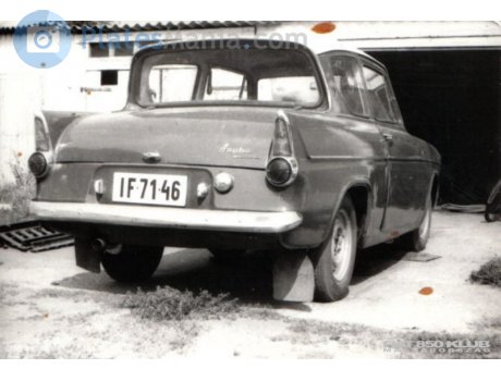 The covered little blue one is an Anglia 105E/123E, according to its long roofline could be an estate. The green 2-door is from the same Corsair generation as the white 4-door, but with a modified (likely home-made) quad-headlamp front.