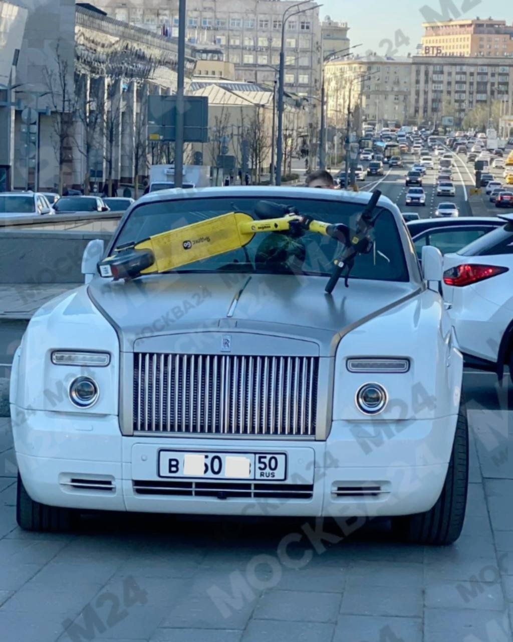 Судя по видео он заехал внаглую на тротуар и там встал. Тут один хорош товарищ и другой, который таскал самокаты. Лобовое теперь в несколько сотен тысяч влетит владельцу походу)