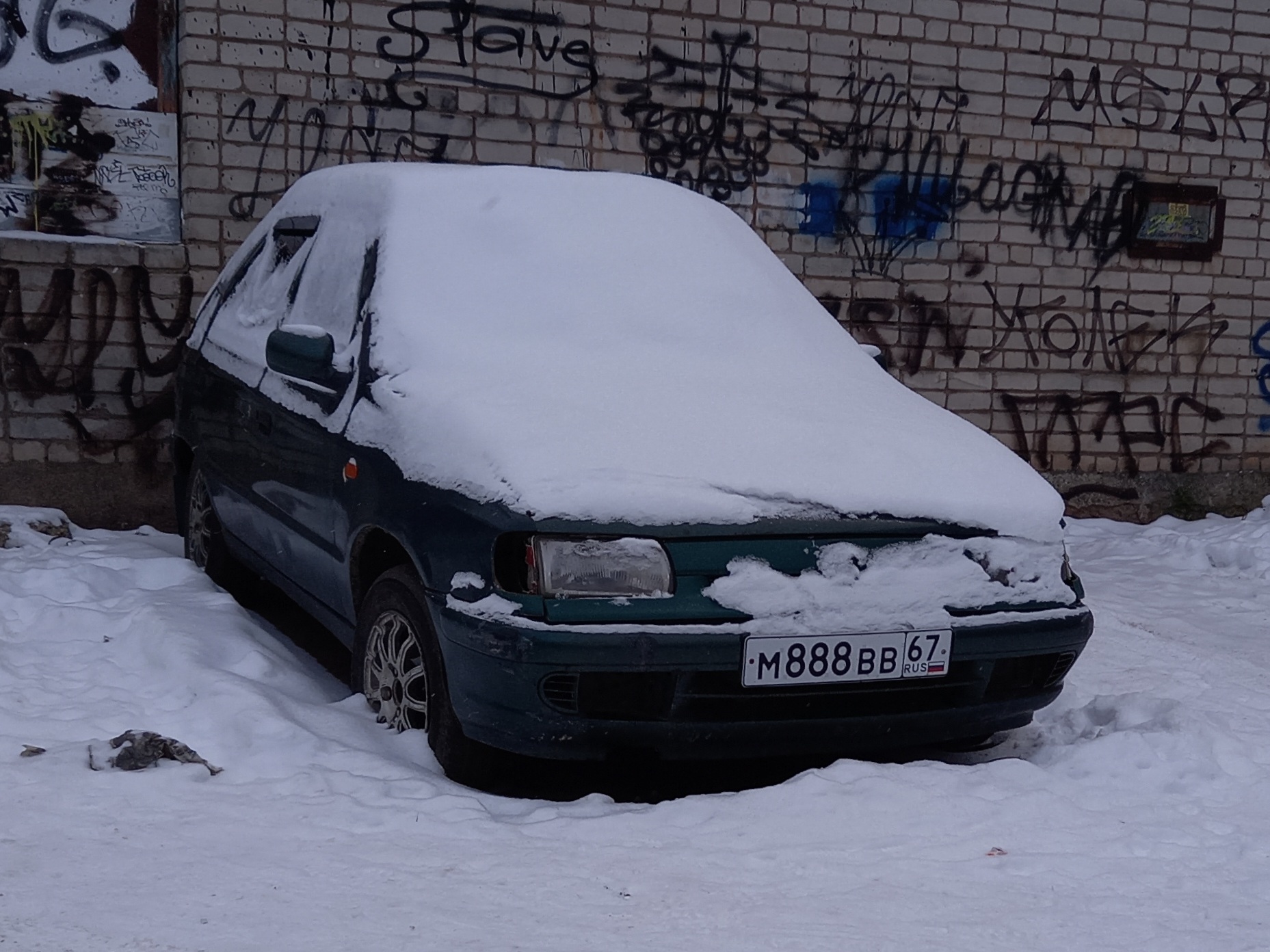 Не знаю точно, сколько машина стоит в этом Богом забытом закоулке, который отсылает к 90-м, но, по снегу на машине, рискну предположить, что стоит она здесь уже больше недели.