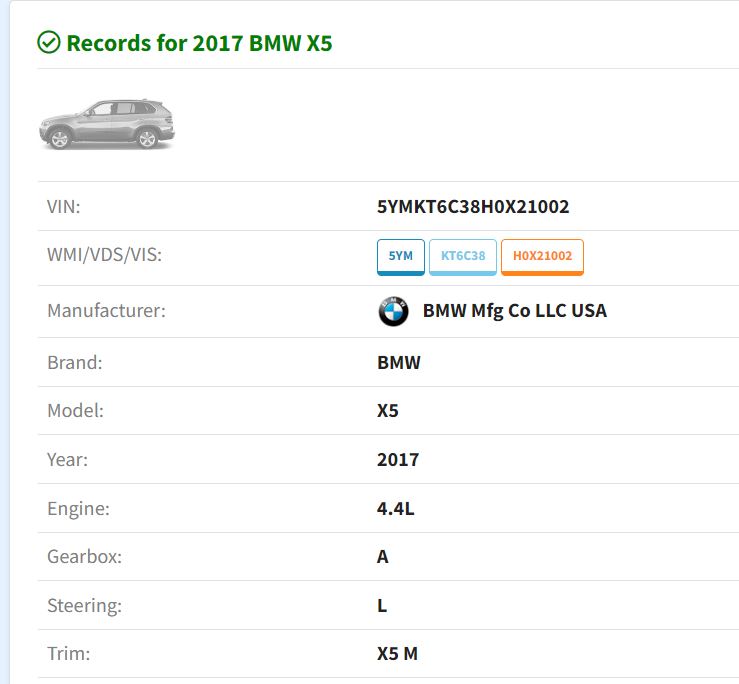 Было выставлено у вас изначально х5, я поменя на х5м, на автокоде информация спорная, но вин у автомобиля оказался не от М-ки.