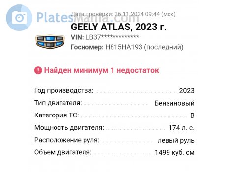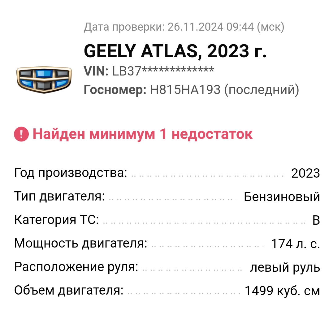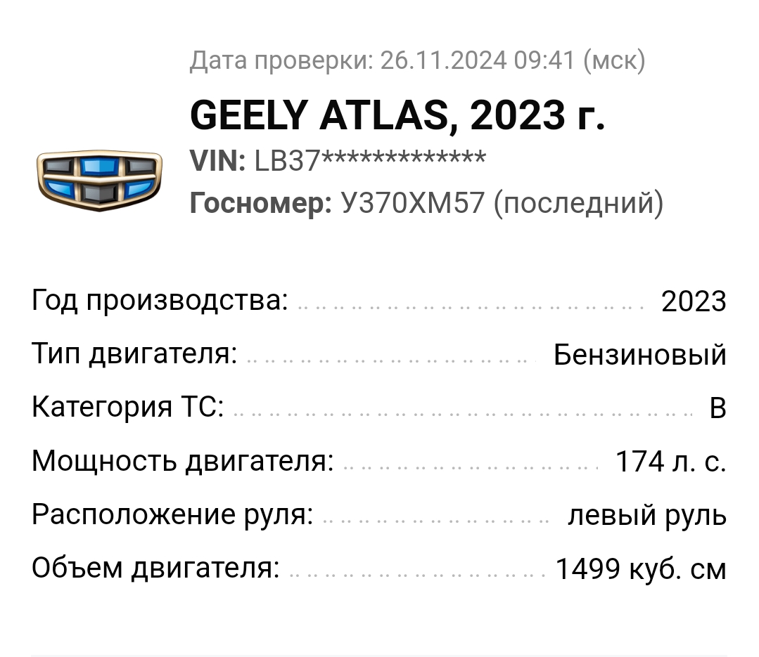 У меня была ещё интереснее ситуация: номер пробивается (по крайней мере пробивался) как Renault Arkana (ибо номер перевешен этого Рено), поиск по фото говорит, что это Geely Atlas, а вчера выяснилось, что это Boyue (если я ничего не перепутал)