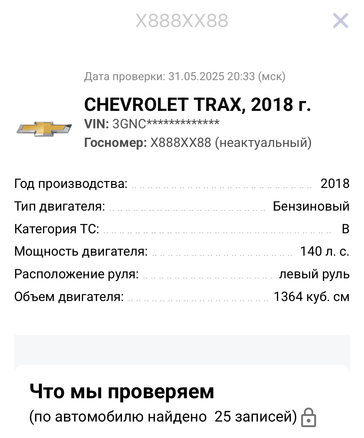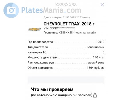 По автокоду Chevrolet Trax 2018, снятый с учета