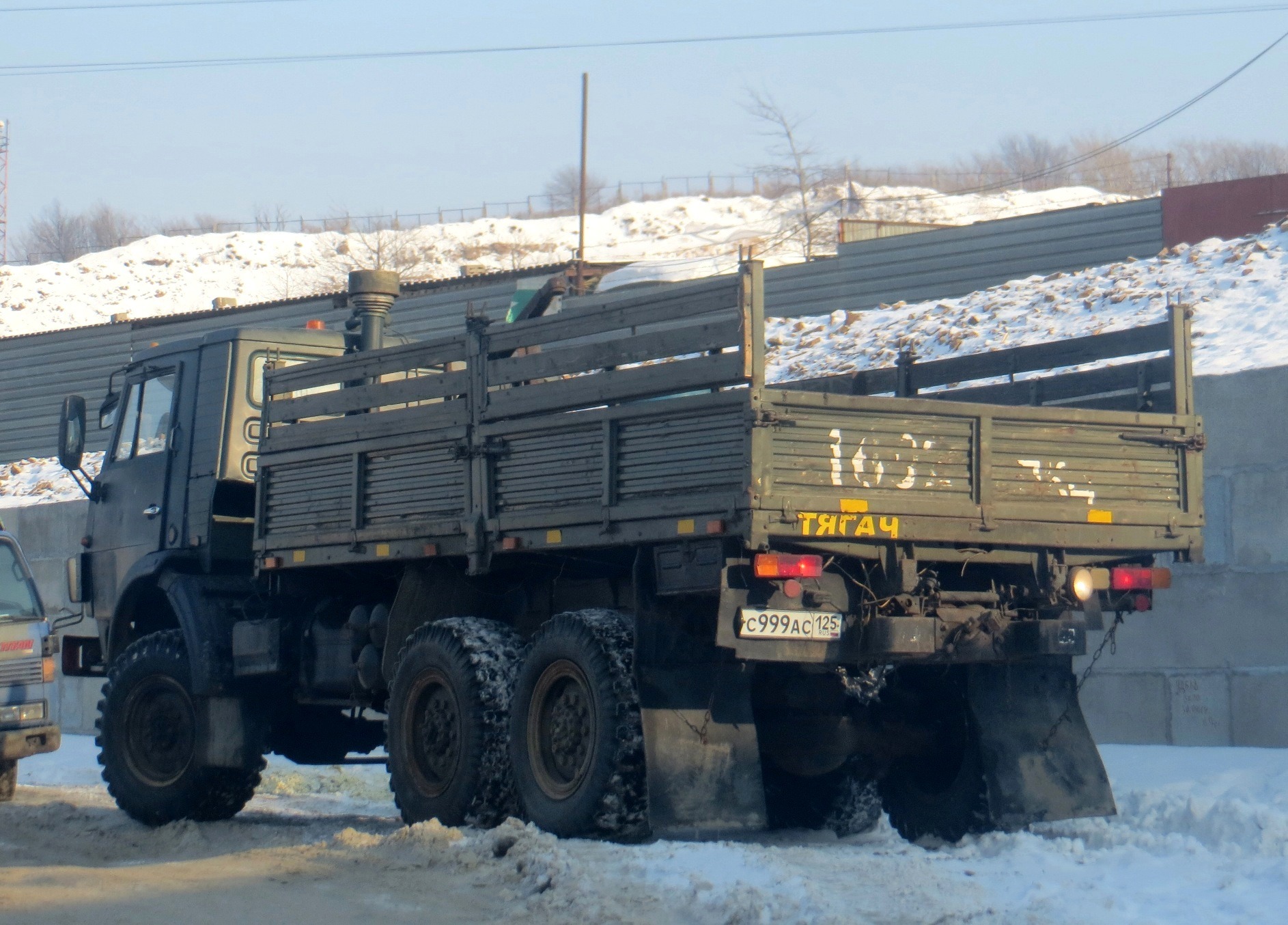 Тягач ВПАТП, видимо в связи со снегопадом решили запастись топливом в бочках