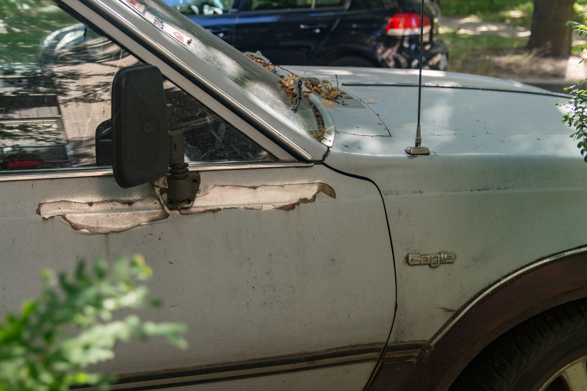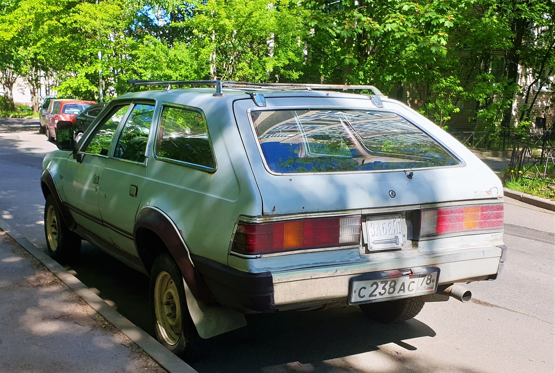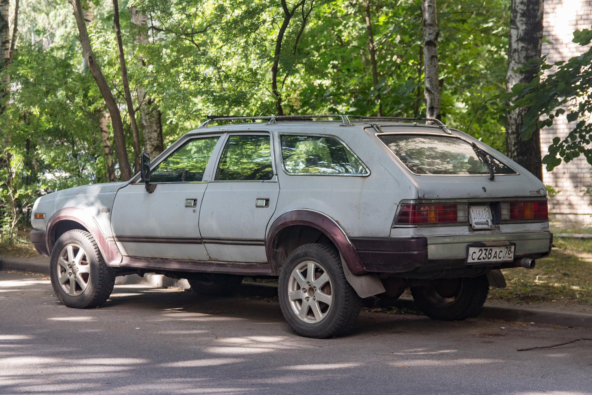 Он не белый, да и, собственно, не был им никогда. Краска матовая, поэтому пыль, грязь и прочие артефакты уличной жизни постепенно всё больше сказываются на её как будто полинявшем со временем оттенке.