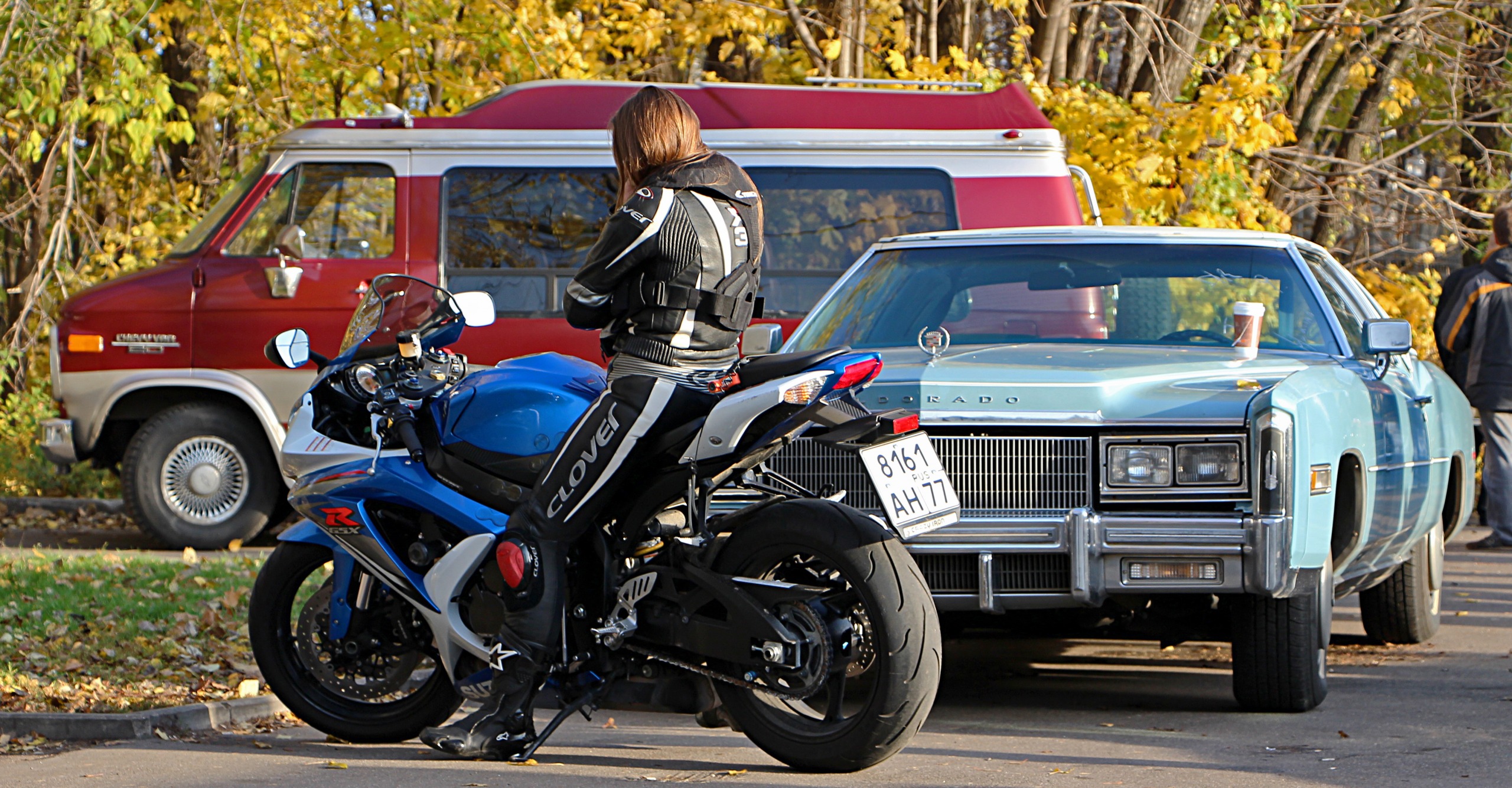 ну я только из-за девчули на мото сделал кадр, но потом понял выигрышность комбинации "девушка+сузуки+кэдди+шеви", и долго ждал, когда лишний люд исчезнет из кадра)