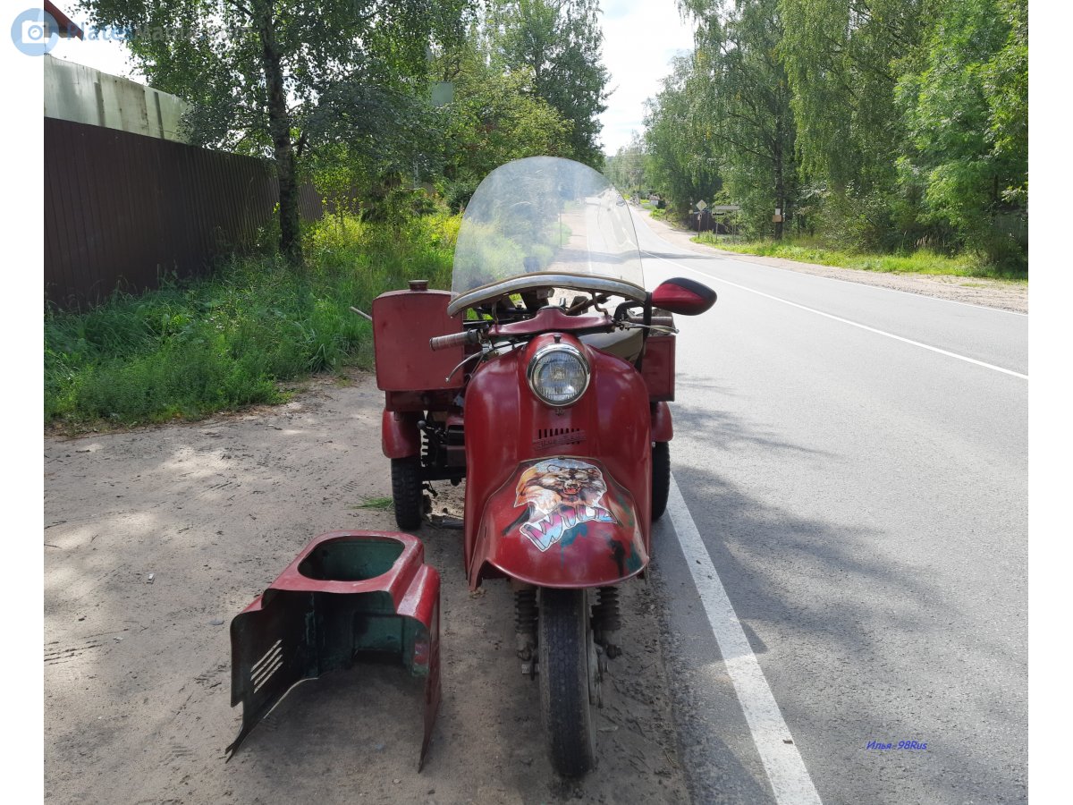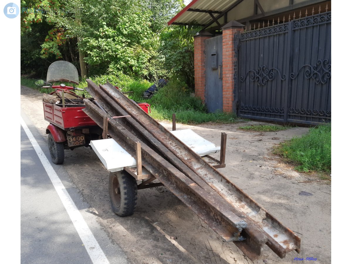 (P.S. на травке мирно "отдыхает" наездник этого транспортного средства ) вид спереди в полный рост с грузом