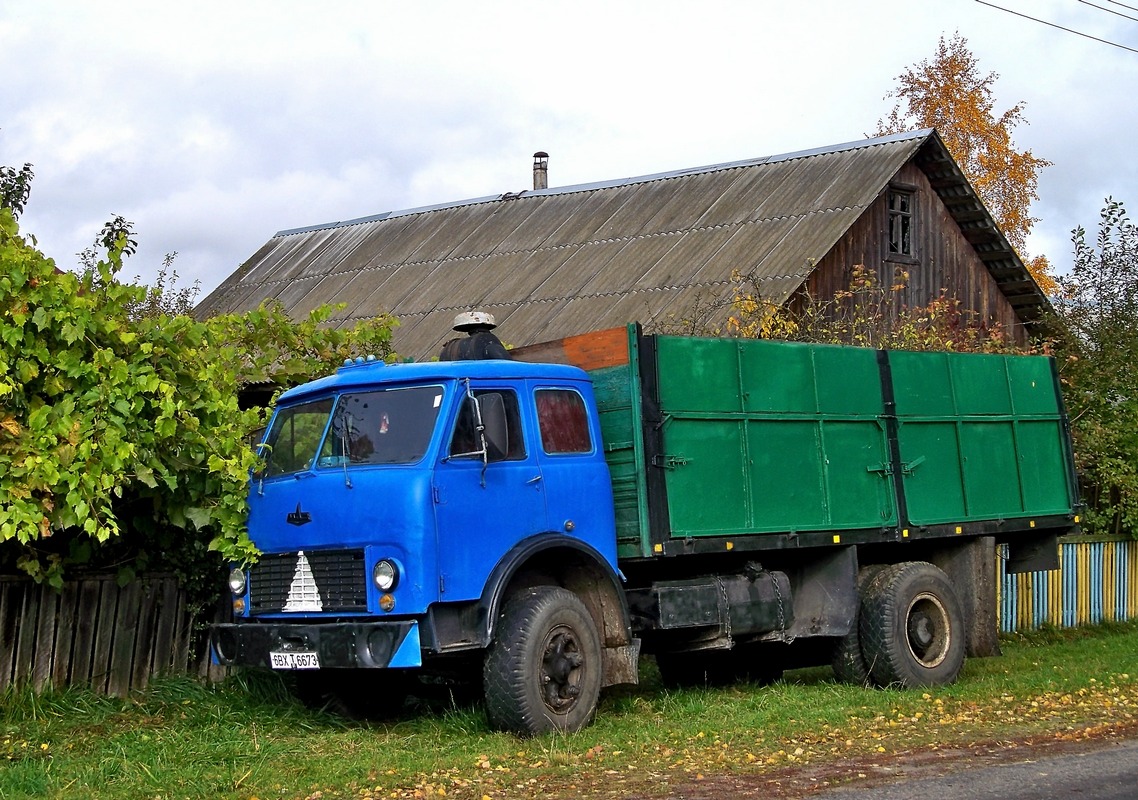 Мне за последнее время (последние лет 10), если не изменяет память, только один такой МАЗ самосвал попадался, на приколе и на рос. номерах (да хоть так). Кран МАЗ с выдвижной стрелой кстати тоже попадался, и по удивительному стечению обстоятельств в том же поселке под Москвой.