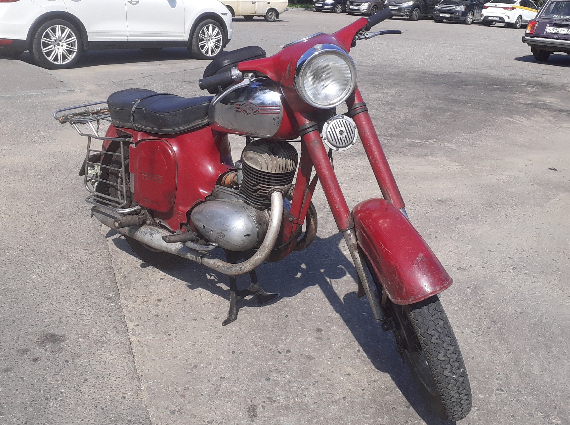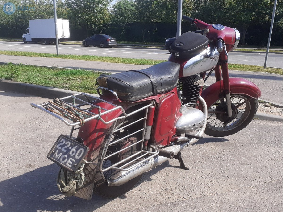 И не просто стоит, а еще и ездит. Жалко, конечно, что я всего на неделю опоздал, но все равно было приятно пообщаться с хозяином. С его слов, 1965 г.в., ценность черных номеров понимает, поэтому не торопится с переоформлением, но все документы есть, мотоцикл вполне переоформляем. А так очень приятная встреча. Не напомаженная, выставочная Ява, а реально аутентичная, в родной краске и на полном ходу. После нашей беседы хозяин ее завел и поехал по Крылатскому по своим делам.